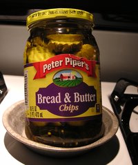 These pickles are so so yummy. The only place I have been able to buy them is a grocery store clear across town about a block from the airport. We happened to be there on Christmas Eve and the place was a madhouse. We had to get crackers to go with the HF smoky cheese, and Swiss slices to put on ham sandwiches.