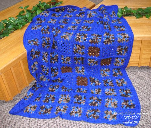 In there, I found a plastic tub with crocheted granny squares, and a skein of yarn to put ’em together with. Done before Middle Son’s wedding, but set aside. One of those UFOs which tend to pile up in a crafter’s place. (hobby parlance = UFO — Unfinished Object)