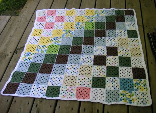 The cotton granny squares blankie is crocheted for the baby on its way to a fella I haven’t seen since he was a baby himself.