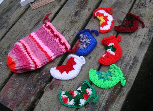 This morning, snapped a picture of the last of the mini-stockings I crocheted.