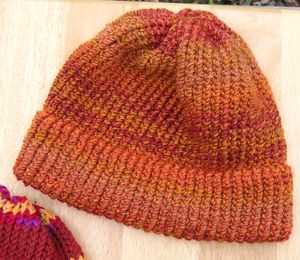Oh, I almost forgot: a knitted hat for Youngest Son’s sweetie. She likes the color, and says the LION Brand Tweed Stripes Yarn is nice and soft and warm.